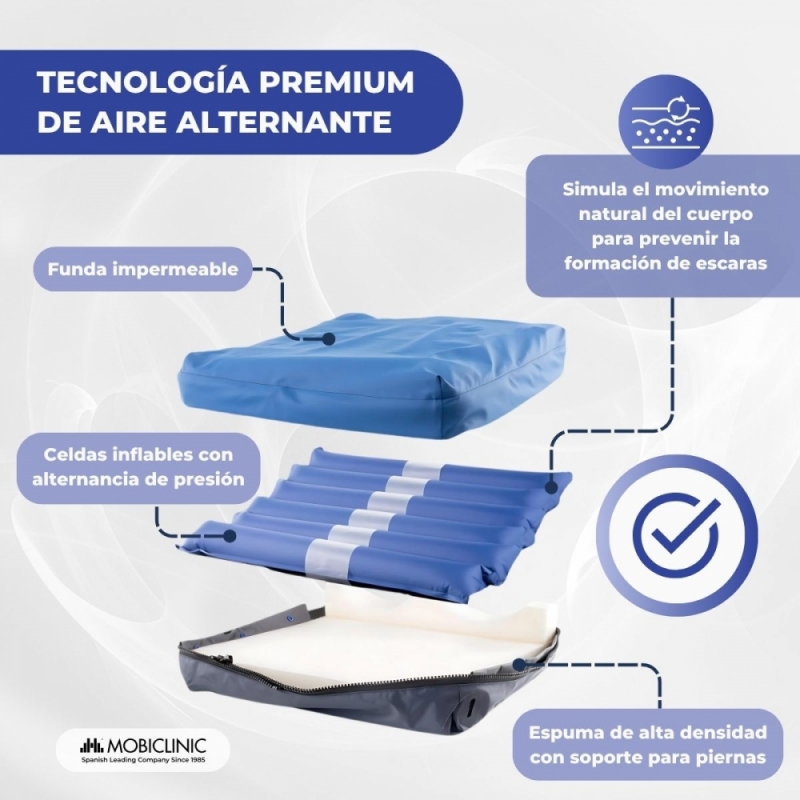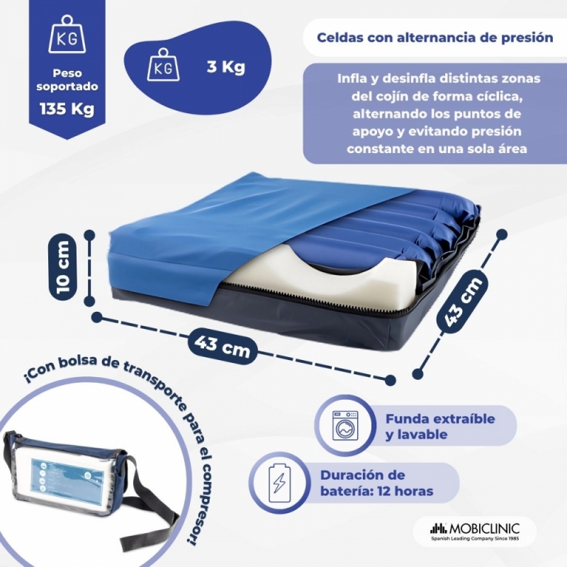 Cojín antiescaras de aire | Alternancia de celdas | Con compresor | Regulable | ARES | Mobiclinic