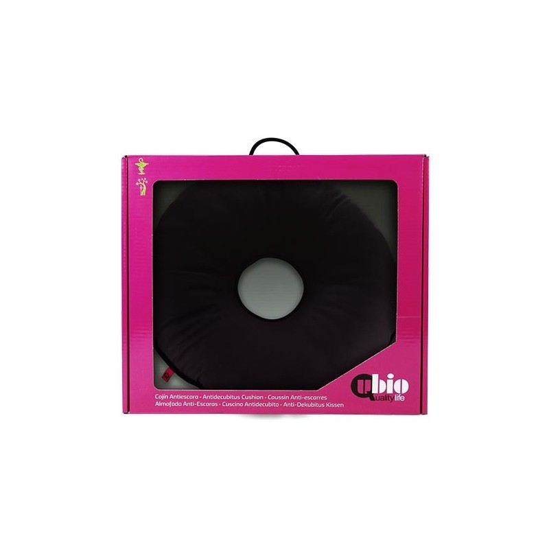 El cojín es de fibra siliconada con la funda de poliuretano. Recomendado para prevenir la aparición de escaras o úlceras por presión. Al disponer de un agujero central se libera de presión la zona del coxis siendo muy recomendable para casos de hemorroides, próstata, posparto, etc.