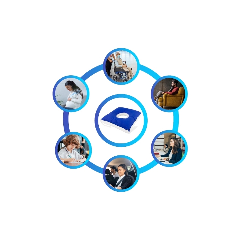 ADAPTABLE: El diseño cuadrado y con agujero de este cojín antiescaras lo hace adaptable a sillas de ruedas, sillones, etc. Este cojín antiescaras está recomendado tanto para la prevención de escaras como para mejorar el descanso en la silla de oficina, en el coche y en cualquier silla del hogar.