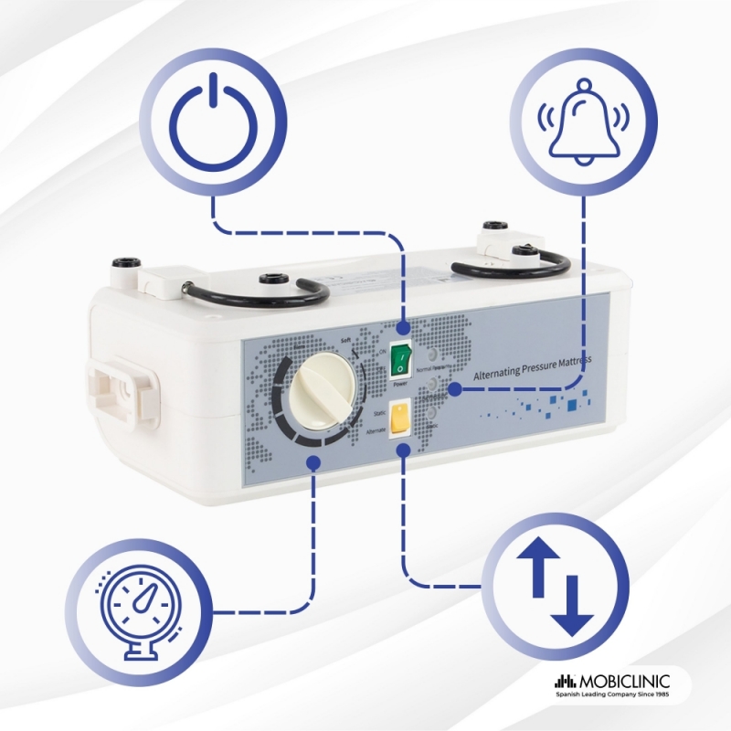 Es apto para cualquier cama con lo que se podrá usar en casa o en el hospital, proporcionando un descanso reparador, cómodo y seguro. Su instalación es muy sencilla, se extiende sobre una colchoneta antiescaras dejando los tubos a los pies de la cama para conectarlos al silencioso compresor que incluye.