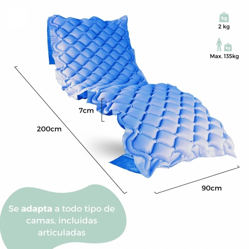 Colchón antiescaras de aire | Con compresor | PVC médico ignífugo | 200x90x7 cm | 130 celdas | Azul | Mobi 1 | Mobiclinic