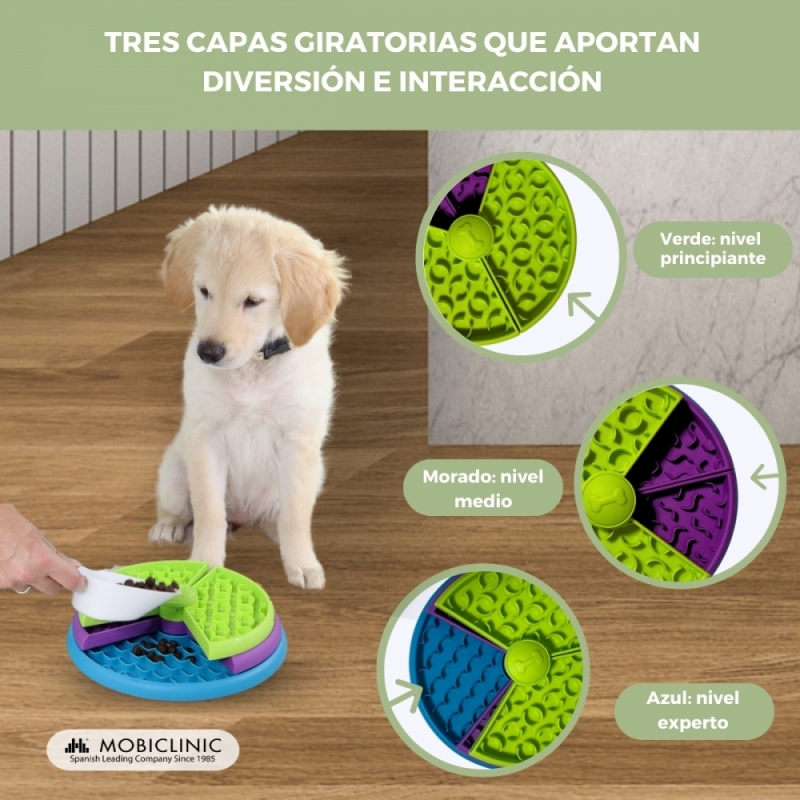 ENTRETENIMIENTO SALUDABLE: Transforma la hora de la comida en una sesión de ejercicio suave entretenida. Con tres niveles giratorios, este comedero ayuda a controlar el consumo de alimentos, fomentando hábitos saludables y una diversión activa.