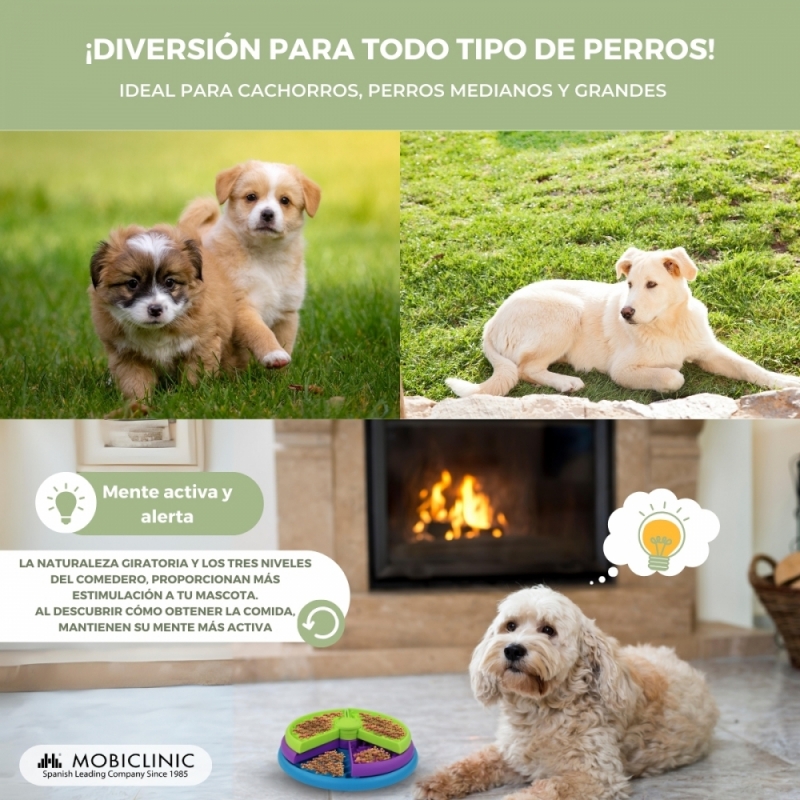 ESTIMULACIÓN MENTAL CANINA: Descubre una revolucionaria experiencia de alimentación para tu perro. Este comedero interactivo giratorio promueve la estimulación mental, desafiando a tu mascota a explorar y disfrutar de sus comidas de una manera completamente nueva.