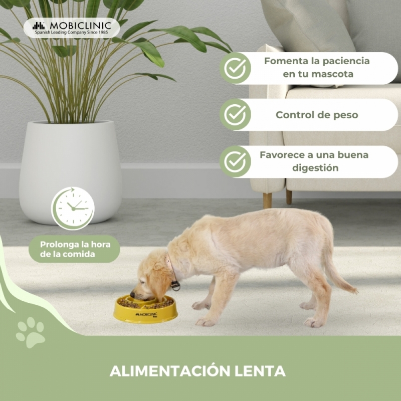 El comedero lento MobiEat va más allá de simplemente ralentizar la alimentación de tu mascota. Este innovador cuenco no solo previene el vómito y reduce la hinchazón estomacal, sino que también promueve una digestión más saludable.