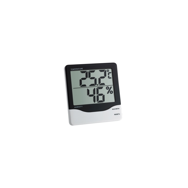 Este funcional termohigrómetro es un instrumento de medición ideal para controlar el clima interior. Puedes vigilar fácilmente la temperatura y la humedad. Los valores máximos y mínimos se almacenan y se muestran con sólo pulsar un botón. La gran pantalla hace que sea fácil de leer.