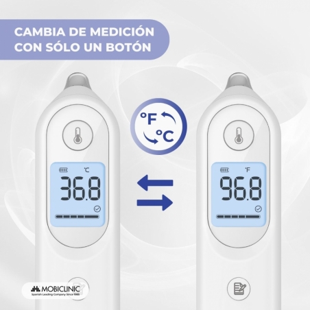 PANTALLA RETROILUMINADA Y DOBLE UNIDAD: Dispone de una pantalla que facilita la lectura incluso en habitaciones con poca luz o durante la noche. Además, ofrece la posibilidad de medir la temperatura tanto en ºC como en ºF, adaptándose a las preferencias de los usuarios