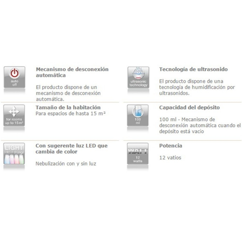 Es una aromatizador que incorpora la tecnología de ultrasonidos: vibraciones de alta frecuencia, que generan pequeñas gotas de la superficie del agua y que gracias a la luz LED (que cambia de color) podrás disfrutar de 4 colores relajantes que combinados con el aroma de aceites aromáticos solubles en agua harán tu cuerpo disfrutar de momentos placentero en donde lo uses.