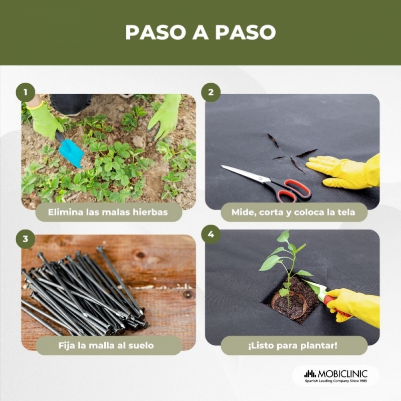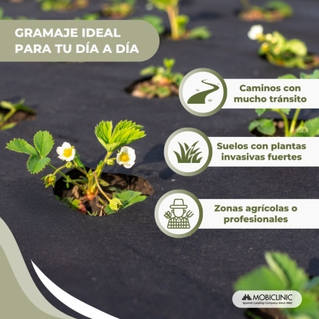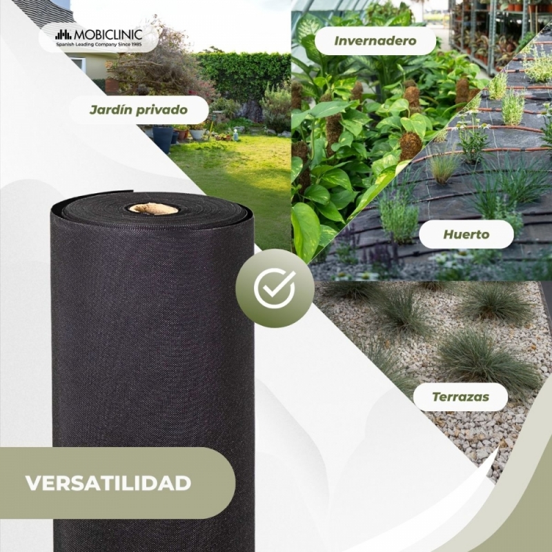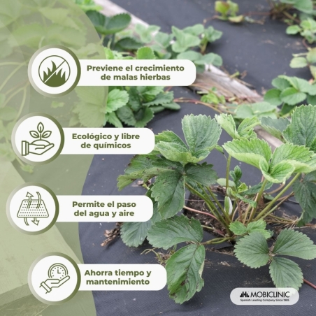 EFICAZ Y ECOLÓGICA: Esta malla antihierbas evita el crecimiento de malas hierbas sin necesidad de utilizar productos químicos. Actúa como barrera física reduciendo la prolifración de hierbajos sin afectar la salud del suelo.