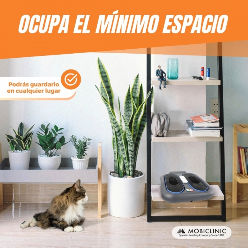 Gracias a su diseño ligero y compacto, podrás almacenar tu masajeador para circulación de piernas Vibfit cómodamente en cualquier lugar al finalizar tu masaje. Del mismo modo, su diseño te permitirá transportarlo a donde desees, pudiendo llevarlo de viaje o a cualquier otro lugar donde necesites y quieras disfrutar de un agradable masaje.