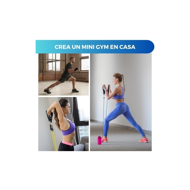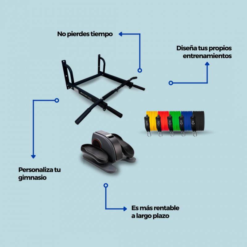 ESTE PACK CONTIENE: los tubos elásticos para mejorar la resistencia, la mini bicicleta elíptica Veleta o pedalier, ideal para ejercitar las piernas, y una barra de dominadas con equipo de instalación