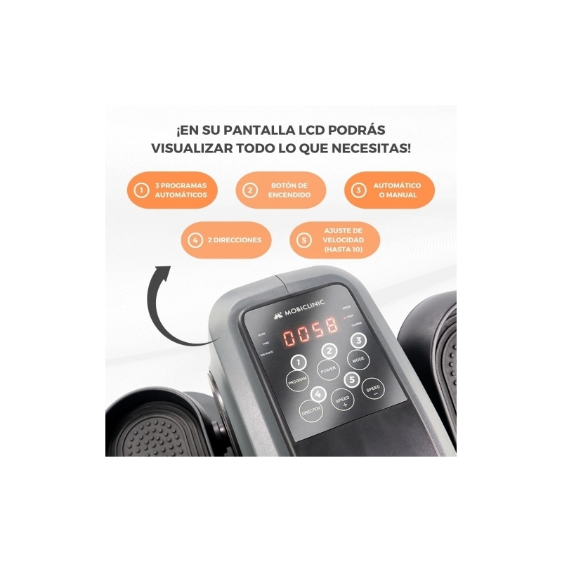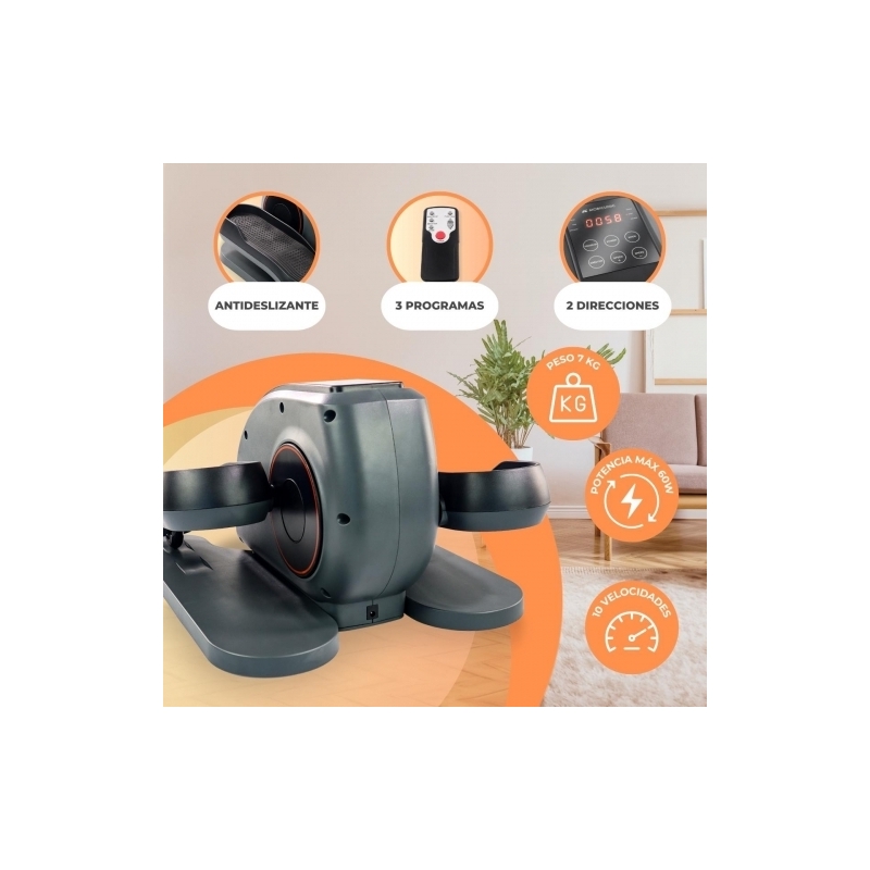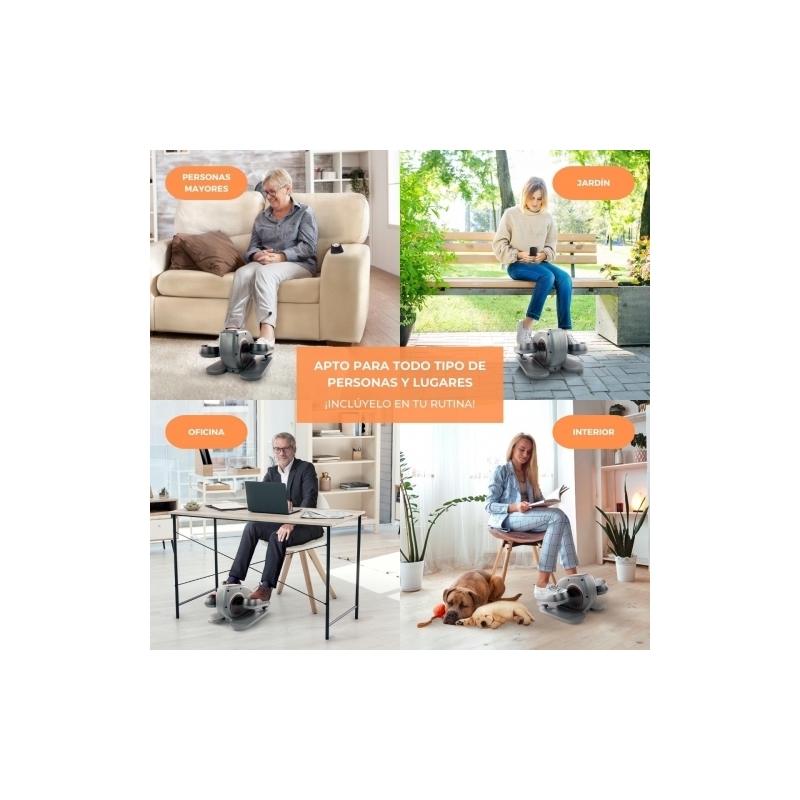 - La mini bicicleta elíptica Veleta o pedalier: está equipada con una pantalla LCD que muestra la velocidad, el tiempo, la distancia que llevas recorrida, las calorías perdidas y el pulso. Y, también, posee pedales antideslizantes para hacer más eficaz tu ejercicio.