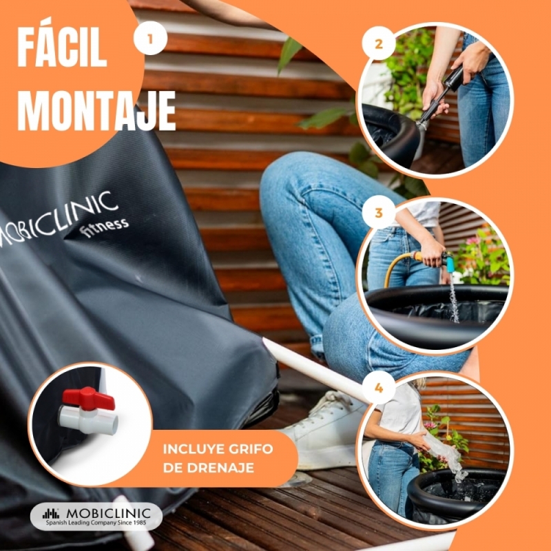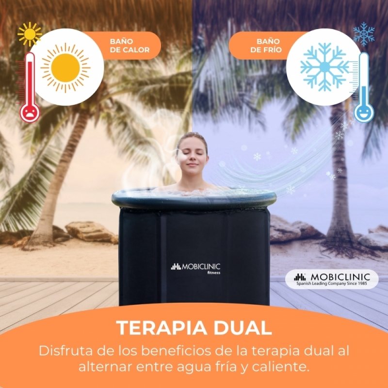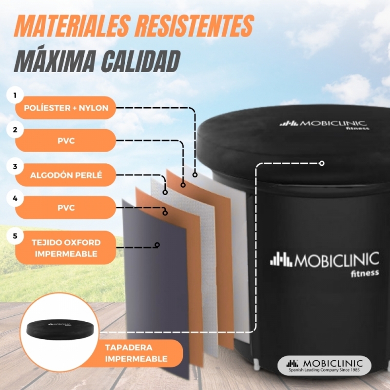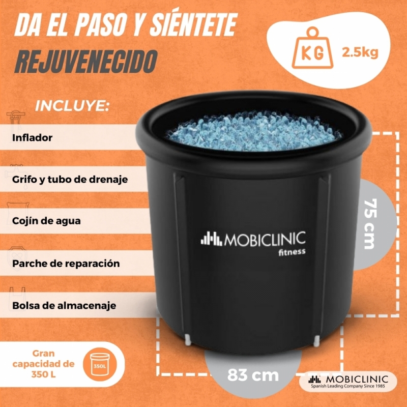 RESISTENTE Y EFICIENTE Construida con PVC y tejido Oxford impermeable de alta calidad, la bañera es robusta y eficiente en la retención de temperatura. No importa si prefieres el agua fría o caliente, la piscina mantendrá la temperatura deseada para que puedas disfrutar de una experiencia de recuperación muscular óptima. La temperatura máxima alcanzable son 50º.