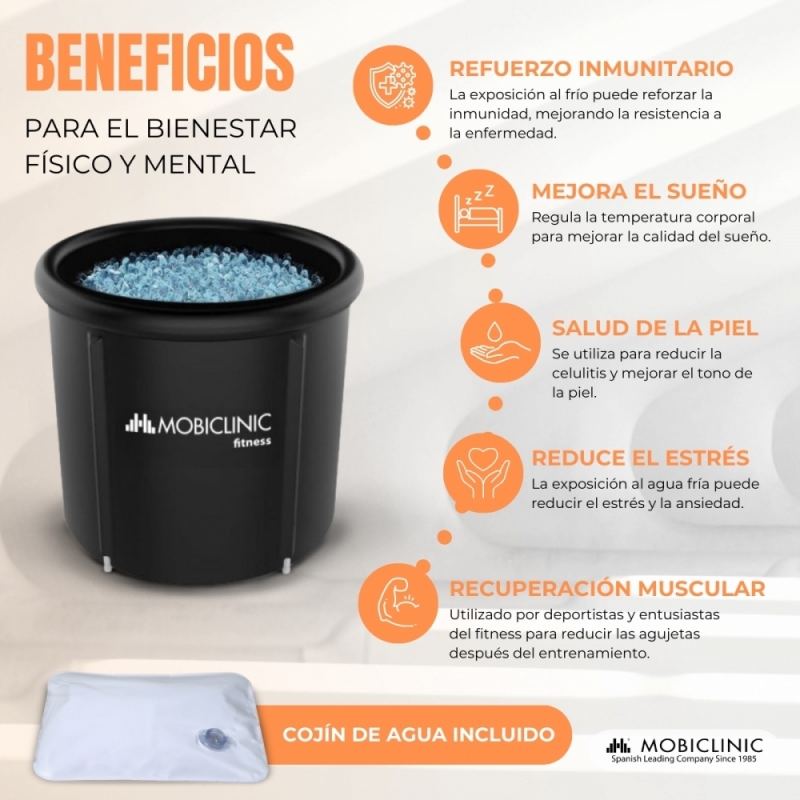 ADAPTABILIDAD DE TU ESPACIO VITAL: Nuestra piscina de hielo Artic, ofrece una versatilidad sin límites, ya que puedes disfrutar de sus beneficios tanto dentro como fuera de casa. Llénala con agua fría o caliente según tus preferencias, sin necesidad de complicadas instalaciones. Su diseño compacto la hace perfecta para espacios reducidos, permitiéndote incorporar fácilmente esta rutina de recuperación en tu vida diaria.