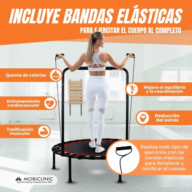 DIVIERTETE MIENTRAS TE EJERCITAS: El trampolín Kangumobi te ofrece una manera diferente de hacer ejercicio habiendo muchas opciones como el salto clásico, skipping, jumping jack, sentadilla y salto, etc. Es más, 10 minutos saltando equivalen a una quema de calorías de 1 hora trotando o 20 minutos nadando. ¡Salta, diviértete y ponte en forma!