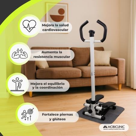 ENTRENAMIENTO EN CASA: Esta máquina de steps con brazos permite trabajar el cuerpo completo, ofreciendo un ejercicio integral. Combina cardio y tonificación muscular, fortaleciendo piernas, glúteos, brazos y mejora la resistencia. Perfecto para quienes buscan entrenar en casa