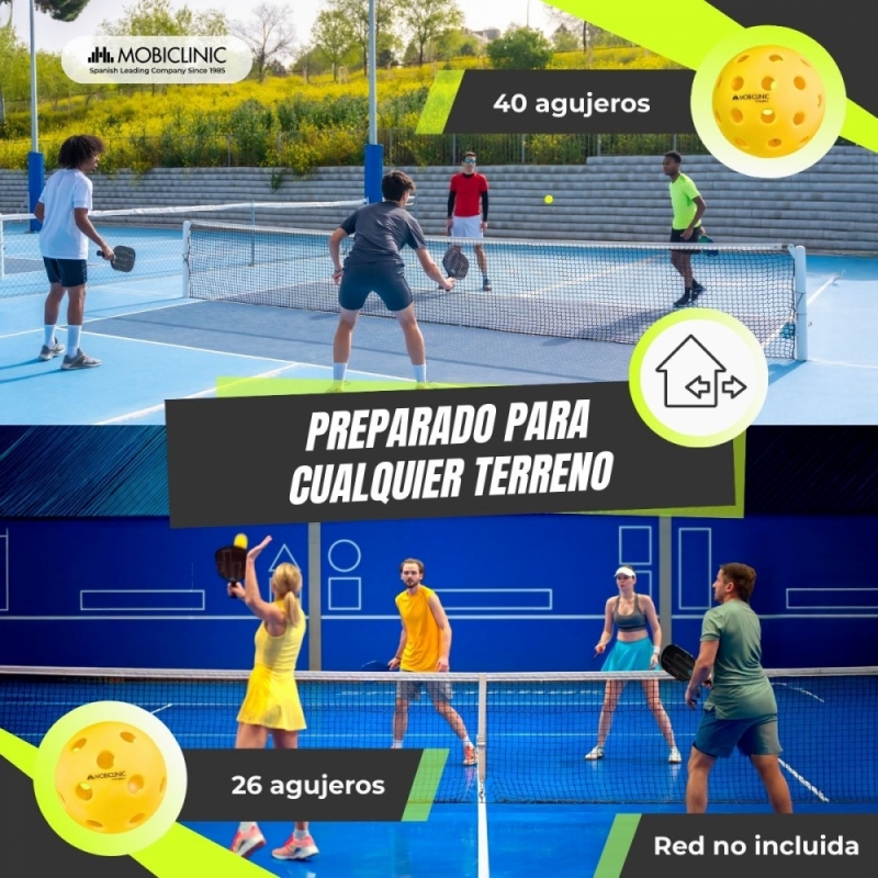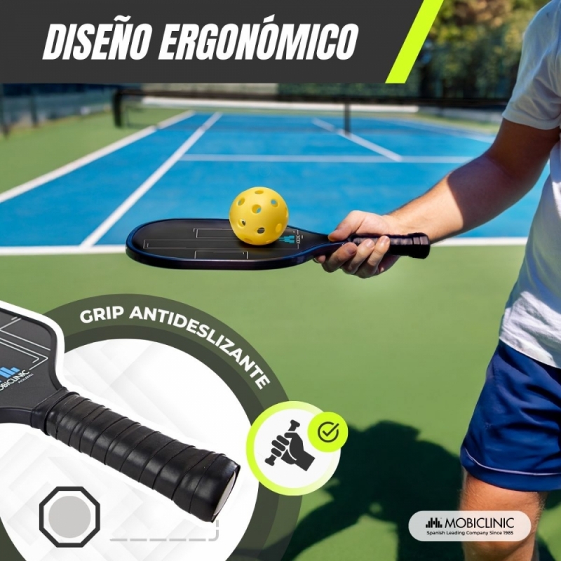 El set de Pickleball Mobiall es una opción perfecta tanto para jugadores principiantes como para exportes que buscan una actividad física completa y divertida. Incluye 2 raquetas fabricadas con fibra de vidrio y núcleo interior de panal de polímero, material que ofrece combinación de control y potencia durante el juego. Sus empuñaduras ergonómicas con grip antideslizante y absorbente aseguran una sujeción cómoda.