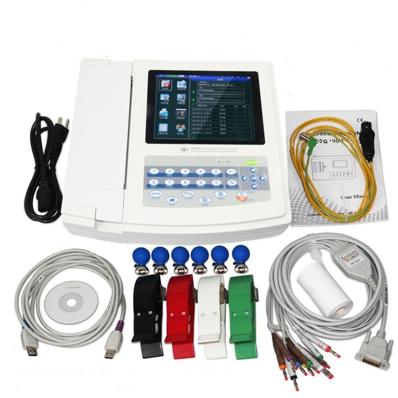 Este monitor electrocardiógrafo digital ECG1200G, muestra la representación gráfica de la actividad eléctrica del corazón, recogiendo la señal de ECG de 12 derivaciones y la forma de onda de impresión mediante el sistema de impresión térmica. Mide, graba y muestra la forma de onda de ECG en el modo AUTO / Manual, mide y diagnostica los parámetros de la forma de onda de ECG de forma automática, interfaz en varios idiomas, AC / DC, selección de avance de ritmo, impresión de el gráfico de tendencias y el histograma de intervalo PR, gestión de base de datos de casos.