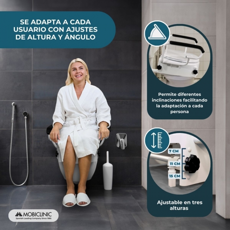 Esta alza para wc es perfecta para las personas con necesidades especiales que precisan una ayuda de baño: inclinable, ajustable, con reposabrazos abatibles y tapa, que les facilite la higiene diaria y mejoré su autonomía y autoestima.
