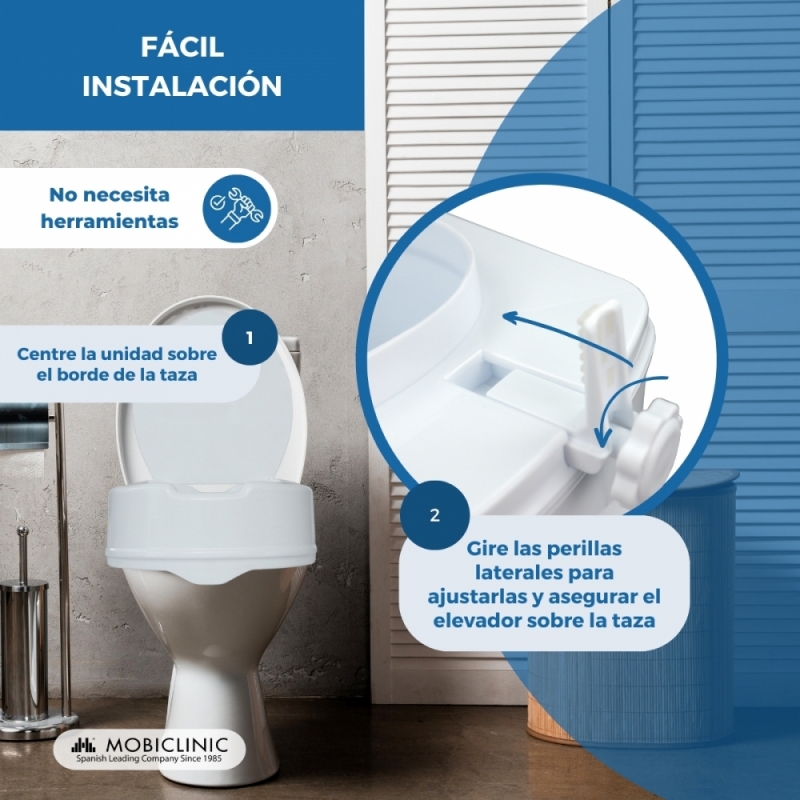 ADAPTABLE: la instalación del elevador de inodoro para adultos es muy sencilla y no necesita de herramientas gracias a su sistema de fijación lateral