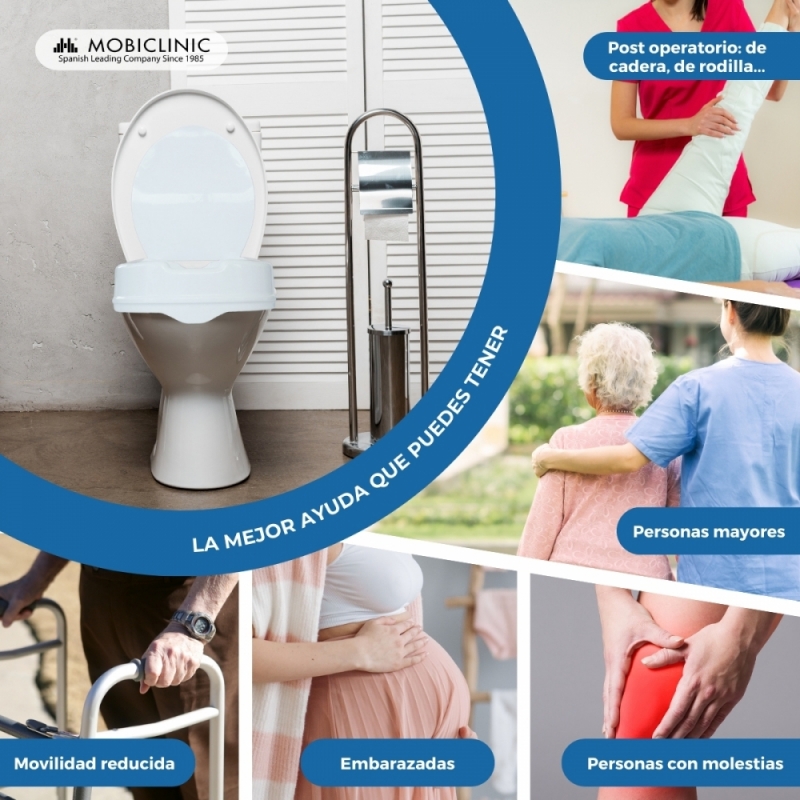 Es un elevador WC, especializado para ayudar a personas con diferentes padecimientos como pueden ser: personas con fracturas de fémur, personas obesas, con osteoporosis, hemipléjicos, con prótesis o artrodesis de cadera, con procesos degenerativos de cadera o rodilla.