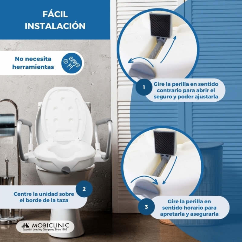 SEGURIDAD: con su seguro sistema de ajuste al inodoro se evitan los tambaleos del elevador convirtiendo en una extensión del propio váter, eliminado así los accidentes accidentes por deslizamientos