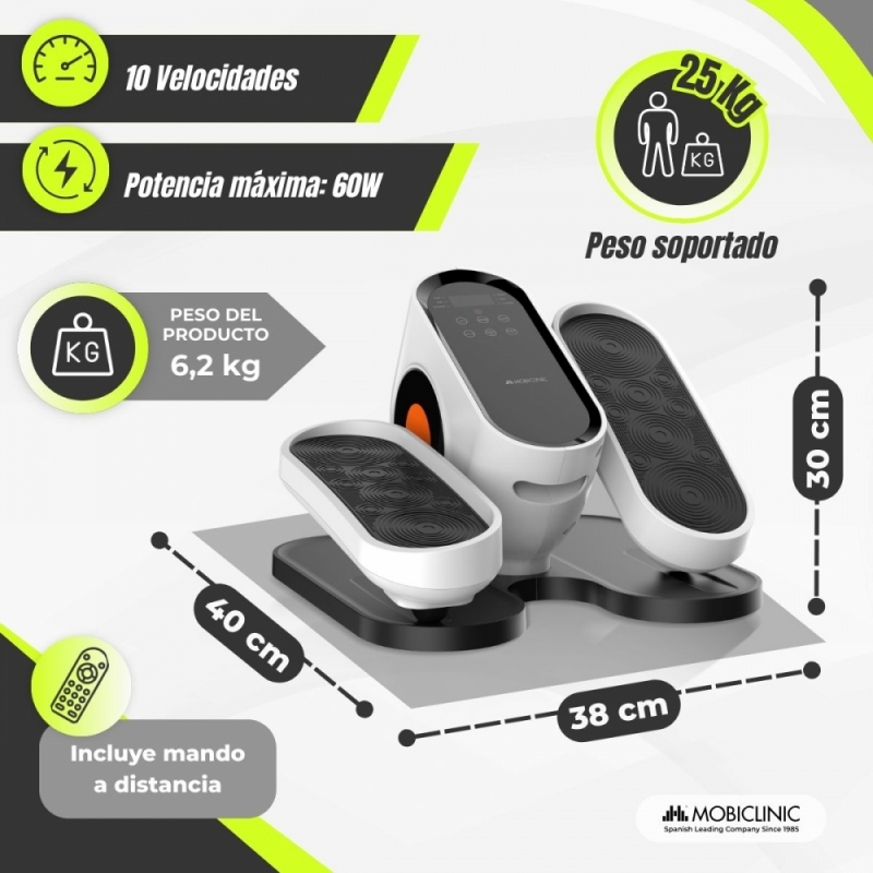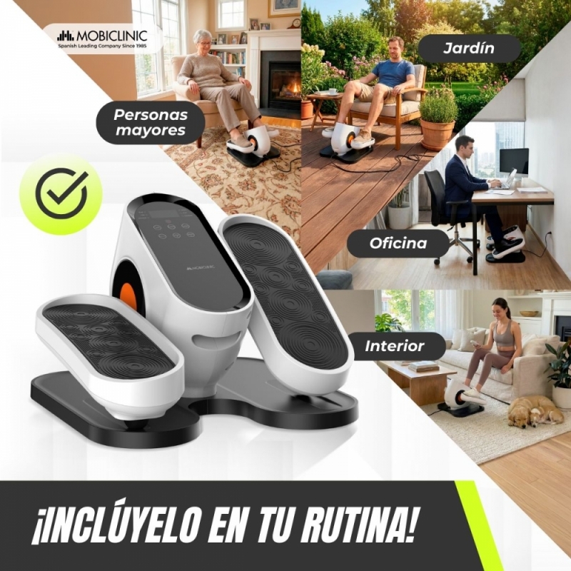 La mini elíptica Mobidal está diseñada para ofrecer un entrenamiento cómodo y accesible desde caso, oficina o cualquier espacio. Es la opción perfecta para mantener la actividad física diaria, mejorar la movilidad y favorecer la circulación en las articulaciones sin impacto.
