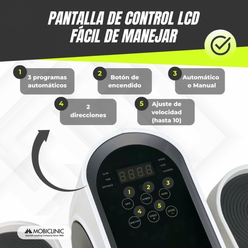 MULTIMODALIDAD DE USO: Esta mini elíptica combina modo manual (HR) y 3 programas automáticos (P1, P2 y P3) que se adaptan a distintos niveles, objetivos y rutinas. Es perfecta tanto para la activación diaria como para el mantenimiento físico o rehabilitación. Además, cuenta con10 velocidades para ajustar la intensidad de forma progresiva según tus necesidades.