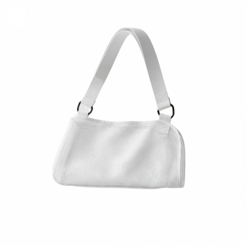 Sistema de sujeción, soporte e inmovilización del brazo y del hombro, mediante adaptación al cuello y tronco con sistema de cierre velcro que permite la regulación de la altura y la anchura.