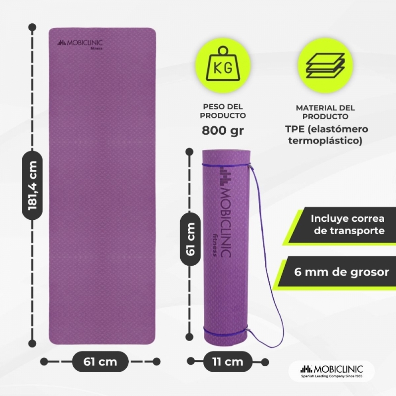 Esta colchoneta está diseñada especialmente para los amantes del yoga y el pilates, para que practiquen estos ejercicios independientemente del nivel que ejerzan.
