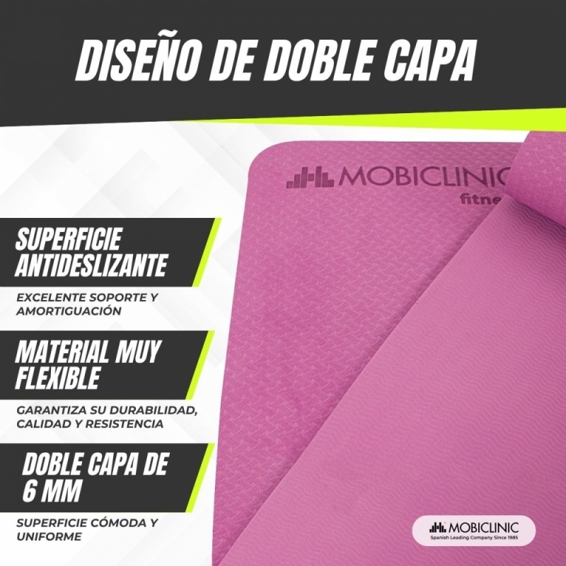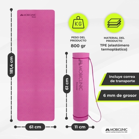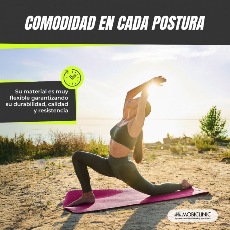 Esta colchoneta está diseñada especialmente para los amantes del yoga y el pilates, para que practiquen estos ejercicios independientemente del nivel que ejerzan.