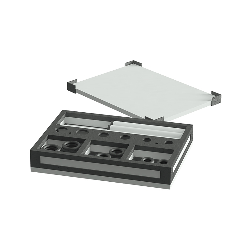 Caja cerrada: 30 x 20,5 x 6 cm Barras de PVC de 15 y 22 cm de altura Anillas de 19, 24 y 30mm de diámetro