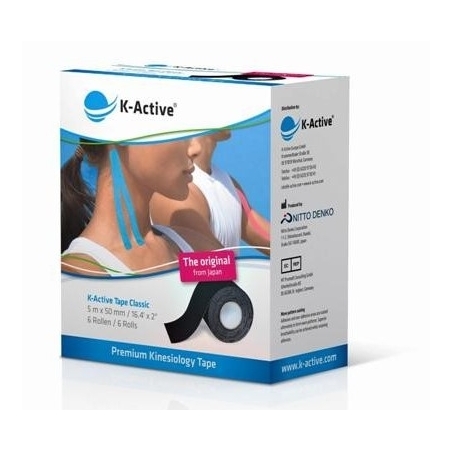 Tape de algodón, poroso, transpirable y del mismo grosor de la piel (vendaje neuromuscular). Nuevo formato, rollo de Kinesiology Tape K-Active envasado en cajas individuales.