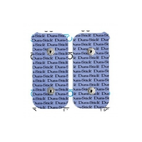 Electrodos Durastick de 5 x 10 cm indicados para electroestimuladores Compex de 2 SNAP. El envase contiene 2 unidades (2 electrodos). Son ideales de usar gracias a la tecnología Easy SnapTM permiten la conexión entre el cable y el electrodo con una sola mano ejercienco presión sobre los mismos.