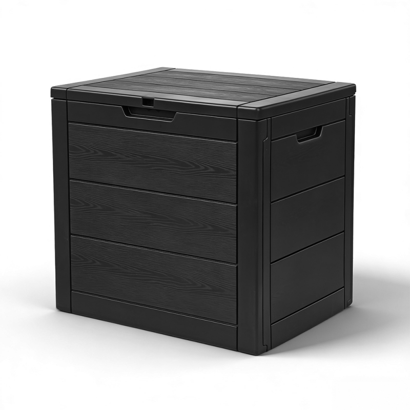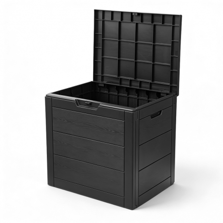 El diseño de este arcón no es solo funcional, sino también estético. Su acabado de efecto madera mejora su apariencia, aportando un toque elegante que encaja en cualquier entorno. Para mayor comodidad, cuenta con asas laterales que facilitan su transporte, permitiendo moverlo sin esfuerzo y cuando sea necesario. A pesar de ser ligero, mantiene una estructura robusta y estable que garantiza un uso seguro.