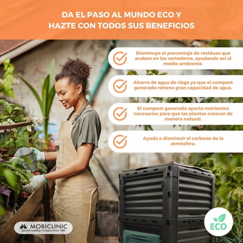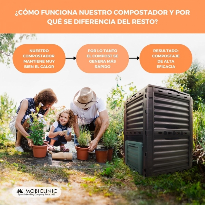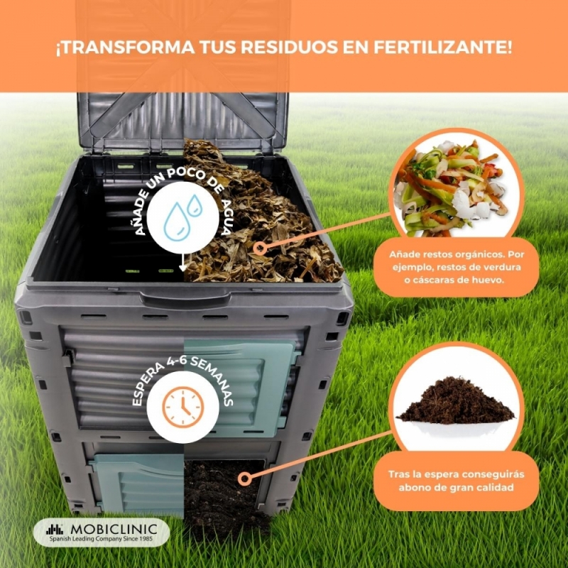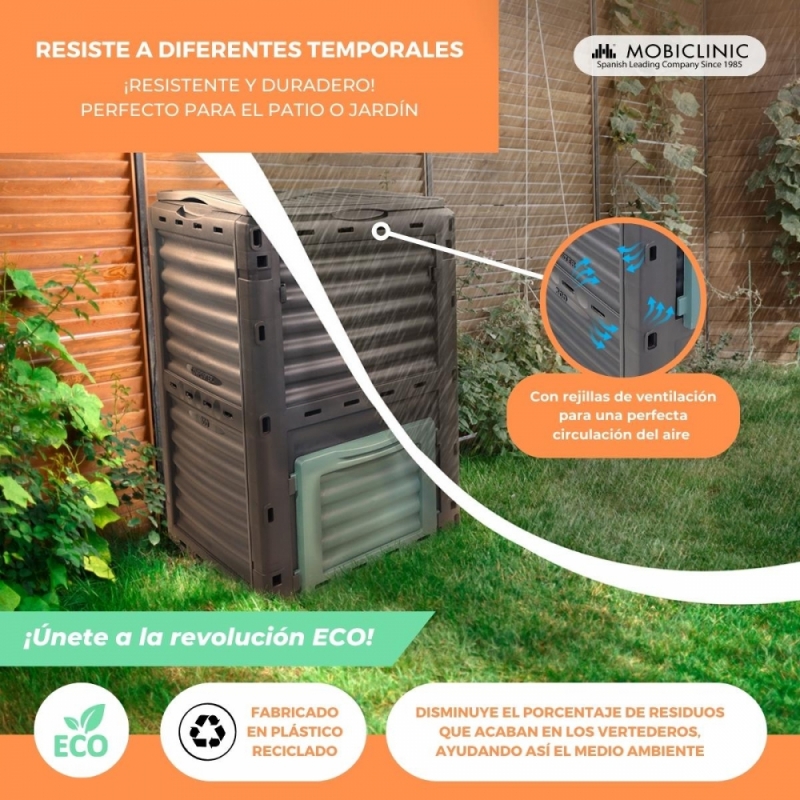 Compostador | Transformador de residuos | Para jardín | Sin herramientas | Eco-Friendly | 300 litros | BioBin | Mobiclinic