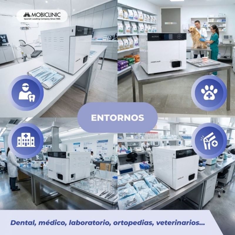 ESTERILIZACIÓN PROFESIONAL Y COMPLETA: El autoclave Mobiclinic de 17L desinfecta mediante vapor saturado al 99%, eliminando microorganismos, virus, hongos y esporas. Es ideal para entornos profesionales como clínicas dentales, médicas, laboratorios, ortopedias y centros veterinarios.
