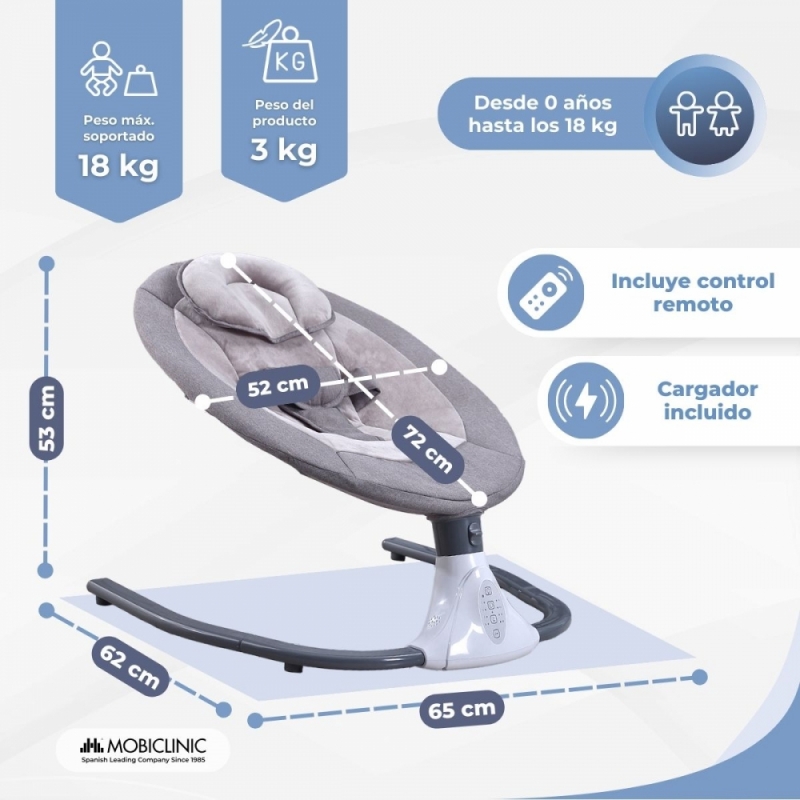 FUNCIONES ADICIONALES: Viene con un mando a distancia para ajustar configuraciones fácilmente y un temporizador para controlar el tiempo de balanceo.