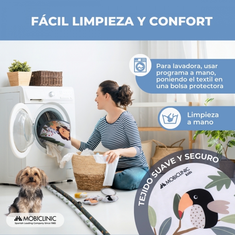 ARCO INTERACTIVO: Incluye un arco superior suave y extraíble que sostiene diversos juguetes colgantes, diseñados para que el pequeño juegue con ellos mientras está tumbado. Esta configuración promueve la interacción activa al agarrar y empujar los diferentes muñecos, además de despertar la curiosidad de los pequeños.