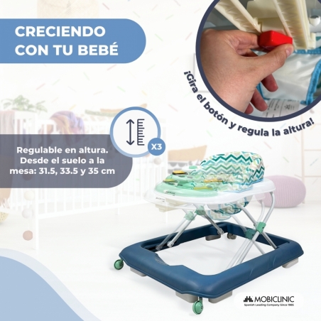 AJUSTABLE EN ALTURA: Diseñado para crecer junto al bebé. este caminador cuenta con 3 posiciones de altura regulables, que permiten adaptarse a su desarrollo y garantizan una postura adecuada y cómoda en todo momento, favoreciendo su seguridad y ergonomía.