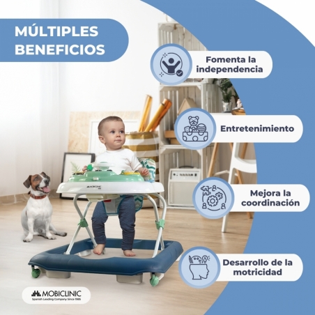 BANDEJA INTERACTIVA: Incluye una bandeja interactiva que incluye 3 juguetes, luces y música para mantener entretenidos a los más pequeños. Funciona por pilas (requiere 2) y es extraíble, permitiendo que se pueda usar por separado. Su diseño estimula la coordinación y el desarrollo sensorial del bebé , ayudándole a explorar y jugar.