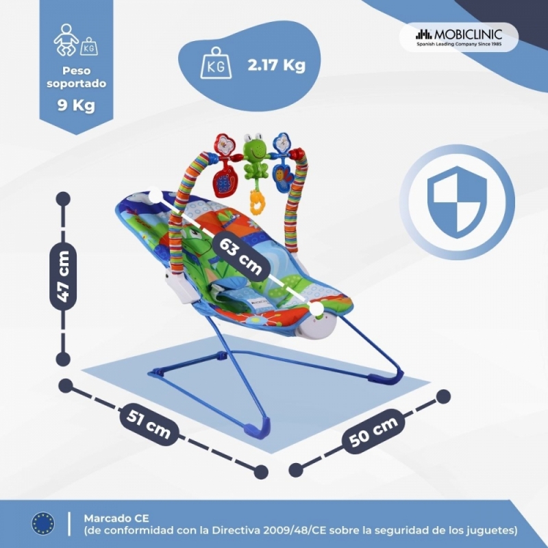 La hamaca para bebés Flash ha sido diseñada para ofrecer comodidad y seguridad a los más pequeños. Su estructura incluye un asiento reclinado, permitiendo que el bebé repose de forma segura y cómoda, se divierta jugando e incluso se alimente. Esto hace que se adapte a las diferentes necesidades del bebé a lo largo del día, favoreciendo su descanso y desarrollo.