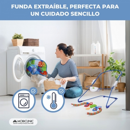 DISEÑO ERGONÓMICO: Pensada para ofrecer el máximo confort, la hamaca para bebés cuenta con un asiento reclinado, adaptándose a las necesidades del bebé, además su diseño favorece una postura cómoda en cada momento. La tela del asiento es extraíble y lavable a máquina, facilitando su mantenimiento y asegurando que el pequeño se encuentre siempre en un lugar limpio.