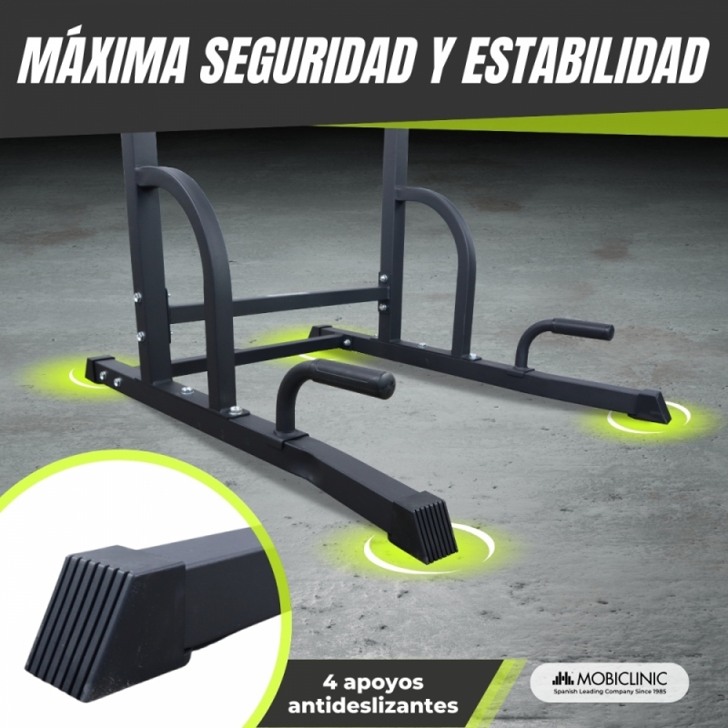 Estación de dominadas | Entrenamiento completo | Respaldo ajustable | Acolchado | Acero | Máx. 100kg | MultiFit | Mobiclinic