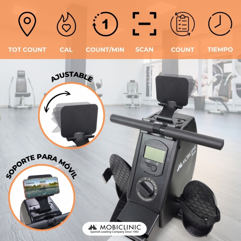 Máquina de remo | Plegable | Volante de inercia 6 kg | 8 niveles de resistencia | Máx. 120 kg | Negro | RowFit | Mobiclinic