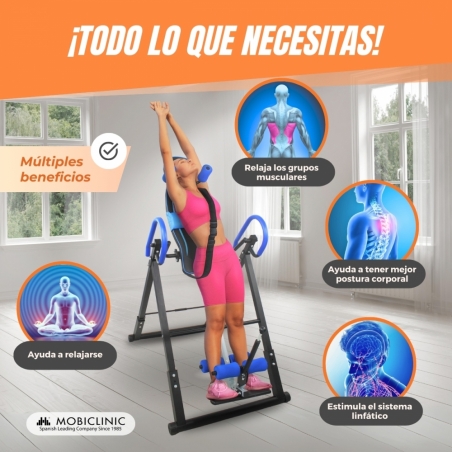 También la tabla de inversión de gravedad FlexiCare es acolchada, por lo que su comodidad hace que sea de una calidad superior. Cuenta con una almohada lumbar, reposacabezas y dos hombreras que garantizan una experiencia óptima durante el ejercicio. Su capacidad de plegado fácil te permite ahorrar espacio y transportarla cómodamente cuando sea necesario.