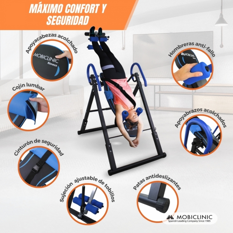 MÁXIMA SEGURIDAD: La tabla de inversión gravitacional FlexiCare, está equipada con cuatro sistemas de seguridad: