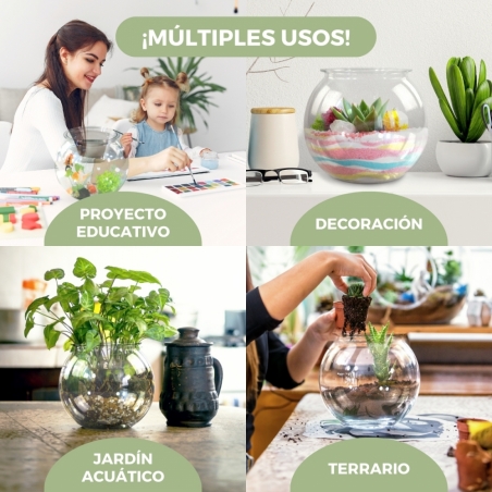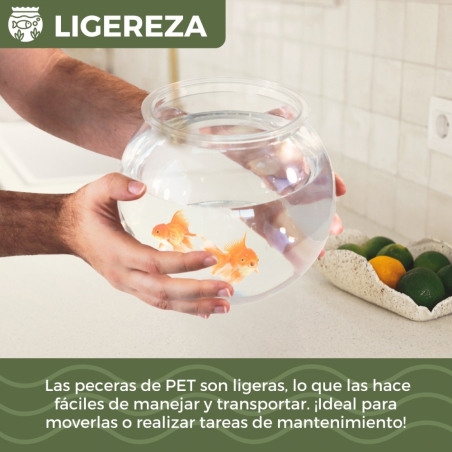 CONECTA CON LA NATURALEZA: La simplicidad de la pecera globo la convierte en una opción adecuada para personas que están empezando en el mundo de la acuariofilia. Además, puede ser una excelente herramienta para proyectos educativos sobre el ciclo del agua, cuidado de animales y ecosistemas acuáticos.