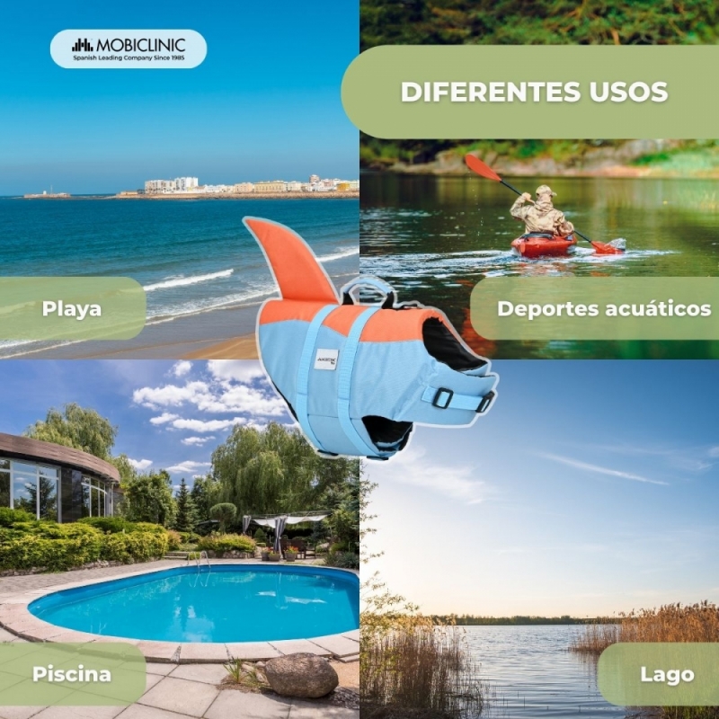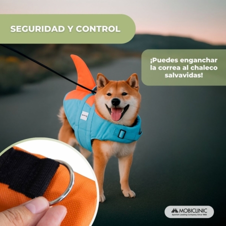 Chaleco salvavidas para perros | Arnés ajustable | Anillo correa | Asa | Aleta decorativa | Sharky | Varias tallas | Mobiclinic