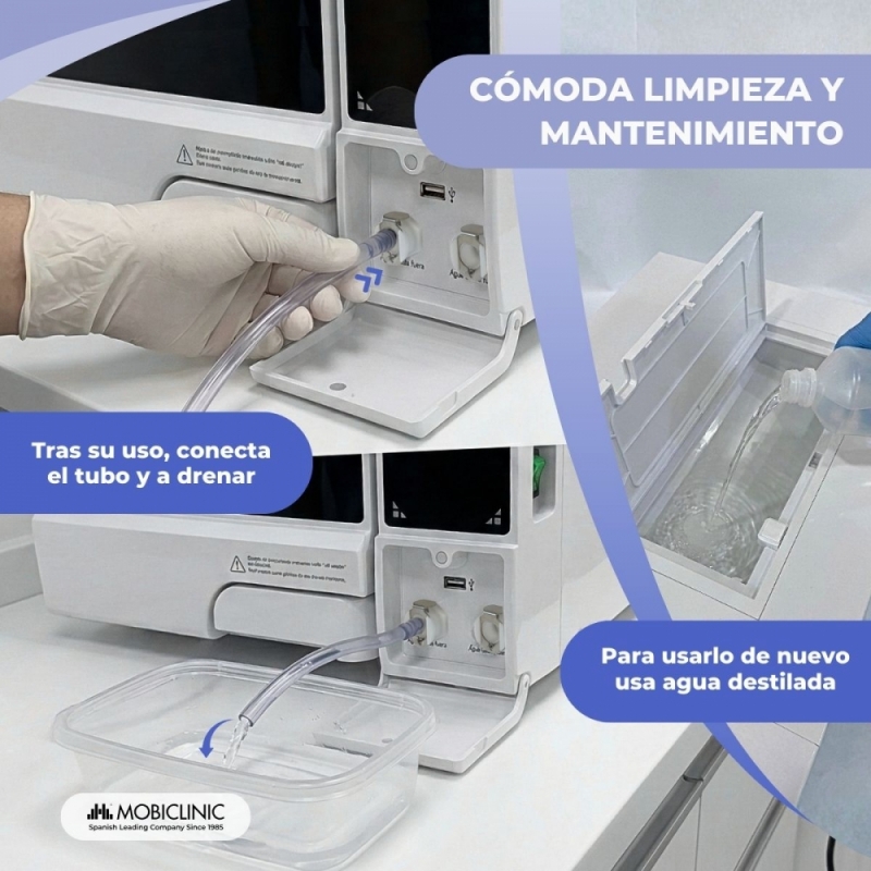 El autoclave esterilizador Mobiclinic de 12 litros es una solución profesional que ofrece una esterilización completa, eficaz y segura, pensada para todo tipo de entornos clínicos. Utiliza vapor saturado al 99% para inactivar bacterias, virus, hongos y esporas, garantizando un proceso de limpieza fiable incluso en los entornos más exigentes.