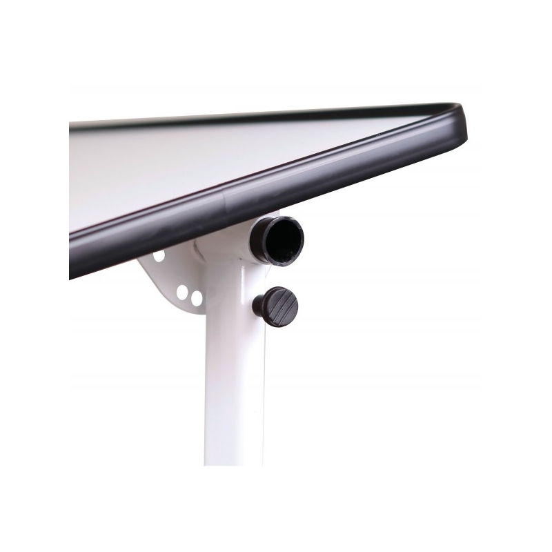 Este está recubierto de un borde que previene de la caida de objetos y productos. La columna de sujección del tablero también permite regular su inclinación hasta 15º, y regularla en altura de 61 a 94 cm, adaptándose a todas las circunstancias que su uso le permite. Cuando no estés usando tu mesa axiliar con ruedas, podrás plegarla y guardarla en cualquier lugar ya que ocupa poco espacio. Además de todas estas facilidades, contiene cuatro ruedas que permiten una movilidad total a donde quiera que vayas. Dos de las ruedas incluyen freno para mayor seguridad durante su uso.